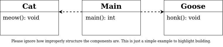 For instance, let’s say I generated an archive file named libanimal.a which is an archive that contains cat.o and goose.o. I can simply link it to a program like so: